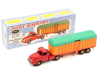 DINKY TOYS (FRANCE) 36B WILLEME Semi-remorque bâché (version avec jantes convexes) rouge & orange, bâche verte