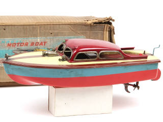 SAKAI (JAPON) Canot à moteur 2 tons de rouge, bleu & jaune