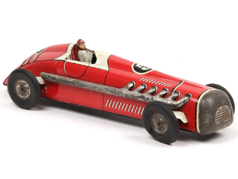 M.L. (FRANCE) 710/5 Auto de course en tôle lithographiée rouge & crème