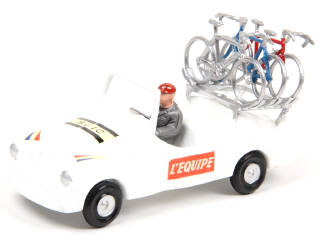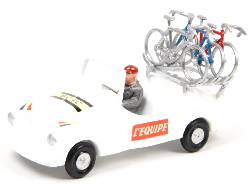 publicités 'L'EQUIPE & SCIC' - avec conducteur & 3 vélos - porte-vélos recollé (importante trace de colle)