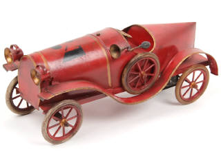 longueur : 31 cm - moteur à clef (fonctionne) - quelques restaurations dont axe de roue avant soudé - pneus remplacés - une patine vieillissante a été appliquée sur le modèle - TRES BEL ASPECT GENERAL POUR UN MODELE AUSSI RARE !