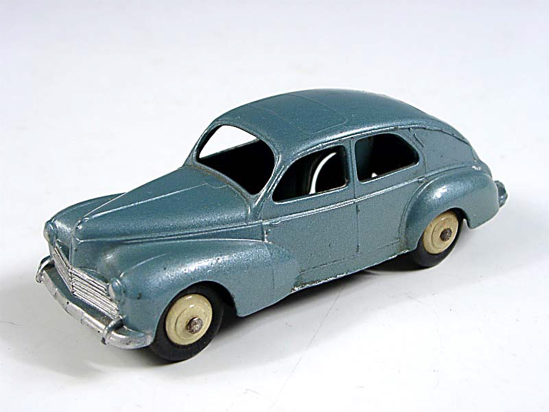 DINKY TOYS (FRANCE) 24R PEUGEOT 203 Petite lunette arrière (version avec intérieur de toit & ailes lisses) bleu métal, jantes crème