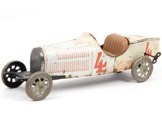JEP (FRANCE) 7379 BUGATTI Auto de course en tôle lithographiée blanc, rouge & noir