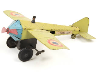 M.L. (FRANCE) Avion monoplan en tôle peinte 'L'OISEAU CANARI' jaune, bleu & rouge