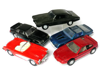 miniatures reproduisant les marques : CHEVROLET CAMARO, PONTIAC GTO, PONTIAC FIERO, FORD MUSTANG & CHEVROLET CORVETTE