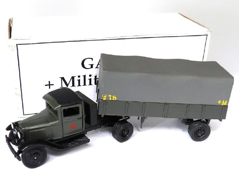 DIVERS (URSS) GAZ AA avec semi plateau à ridelles bâché militaire vert armée & noir, bâche grise