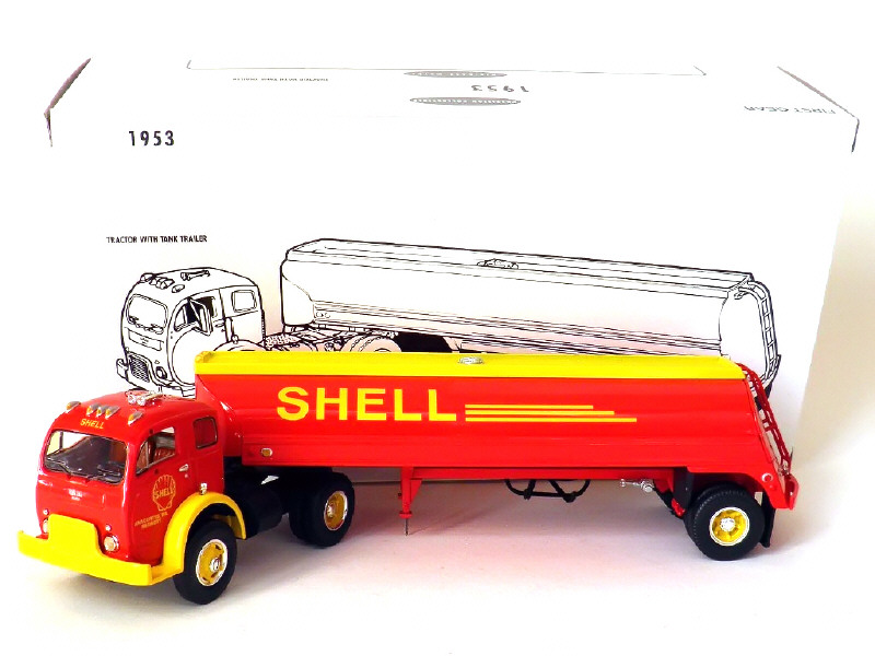 FIRST GEAR (USA) 19-1986 WHITE 3000 avec semi citerne 'SHELL' 1953 rouge & jaune