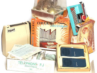 non testé - comprend notamment : 2 machines à écrire, un orgue, un téléphone électrique, turbine à vapeur HERO & talky walky - on y retrouve notamment les marques : FRANCE JOUETS, TRIANG, PHILIPS, METTOY & PETITE - la plupart des modèles sont dans leur boîte d'origine (en états de 'b' à 'e') - possibilité de petits accessoires manquants