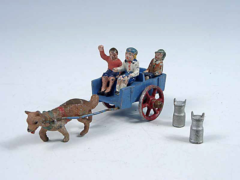 états des figurines de 'C' à 'D' - avec un garçonnet levant le bras, un autre en habits de marin, une fillette & 2 pots à lait