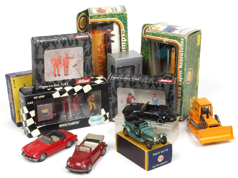 états de 'A' à 'B' - on y retrouve les marques : MATCHBOX, NZG, WIKING (un entourage de pare-brise cassé) , MINICHAMPS, JOAL, SIKU, DUGU & SCHUCO - 10 modèles en boîte (état 'b' à 'd')