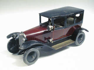 fabriquée de 1926 à 1933 - tôle de fer blanc peinte & agrafée - laiton & plomb - une clef JOUETS CITROËN fournie s'adapte parfaitement au mécanisme - moteur et direction fonctionnent à merveille - SUPERBE ETAT GENERAL !