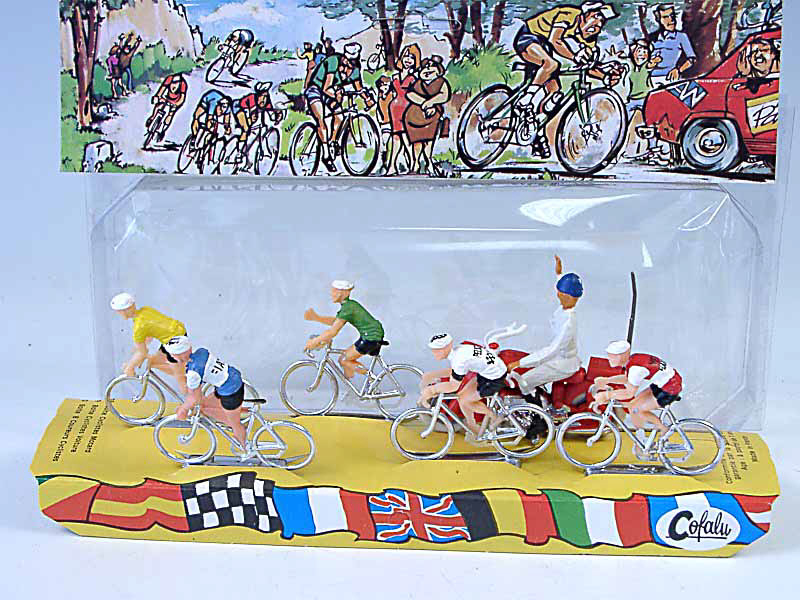 comprend : 5 cyclistes & une moto d'accompagnement - avec publicités 'VELDA - PEUGEOT - FIAT'