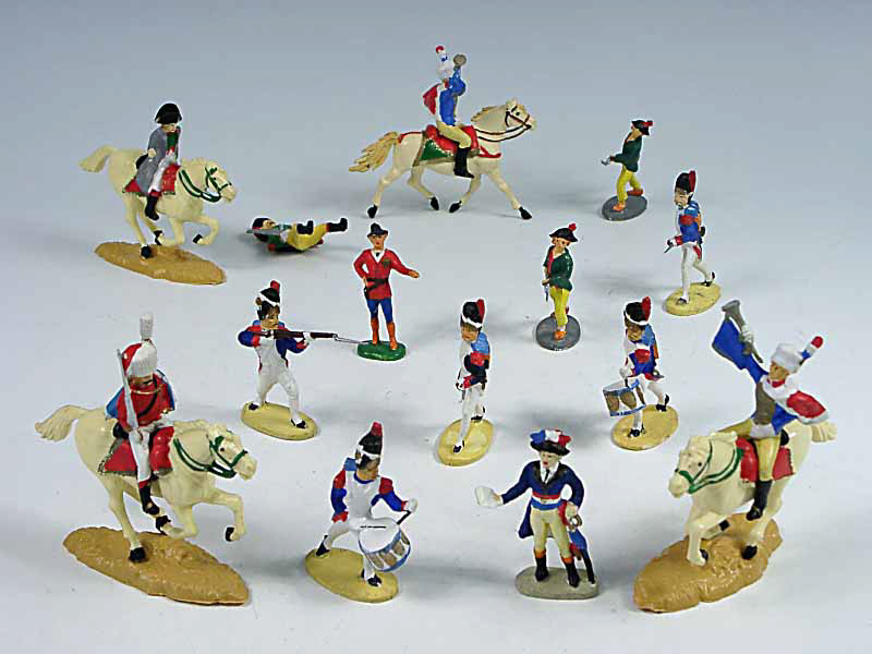 comprend : Napoléon Bonaparte à cheval, 9 soldats d'époque napoléonienne dont 4 cavaliers (manque un cheval), un shériff & 3 personnages de la révolution française