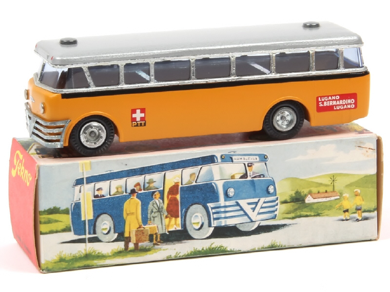 TEKNO (DANEMARK) 850 VOLVO Autobus 'PTT SUISSE' jaune d'or & gris métal