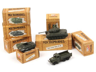 MICROMODEL (ITALIE) Ensemble de 6 véhicules militaires & une remorque kaki
