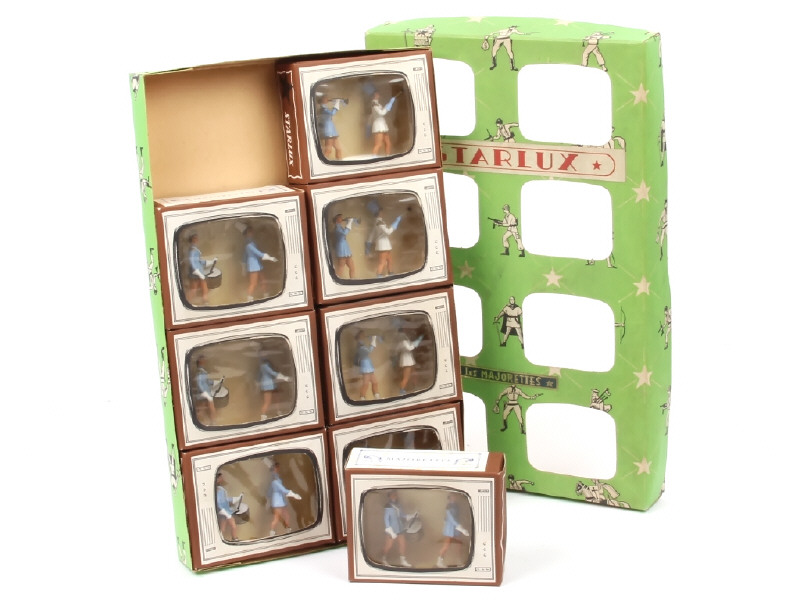 dimensions du coffret : 35,5 x 22 cm - contient : 8 boîtes en forme de téléviseur contenant 2 majorettes - boîtes légèrement encrassées dont une avec blister légèrement décollé