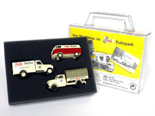 échelle 'HO' - coffret comprenant les modèles : VOLKSWAGEN T1 fourgon, HANOMAG L28 fourgon & OPEL BLITZ bâché