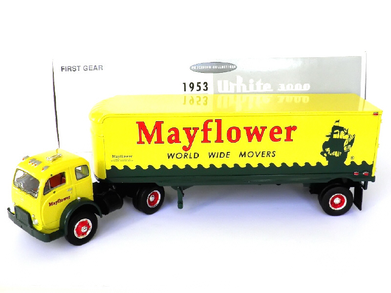FIRST GEAR (USA) 18-1873 WHITE 3000 avec semi fourgon 'MAYFLOWER' 1953 jaune & vert