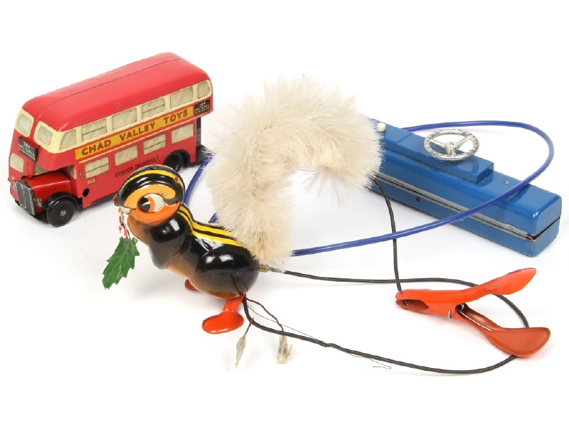 comprend : écureuil filoguidé (état 'B' - fonctionne) & autobus CHAD VALLEY (état 'R' - belle réalisation !) - on y joint une télécommande pour véhicule téléguidé