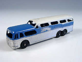 TOOTSIETOY (USA) GMC Autocar panoramique 'GREYHOUND' bleu, argent & blanc
