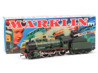 MÄRKLIN 'HO' (ALLEMAGNE) 3086 Locomotive à vapeur 64041 avec tender vert & noir