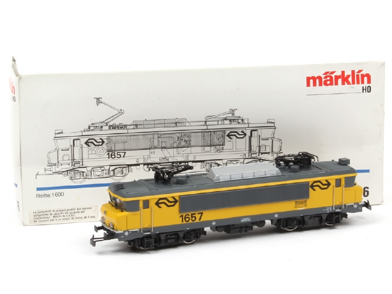 MÄRKLIN 'HO' (ALLEMAGNE) 3526 Motrice électrique 1657 jaune & 2 tons de gris