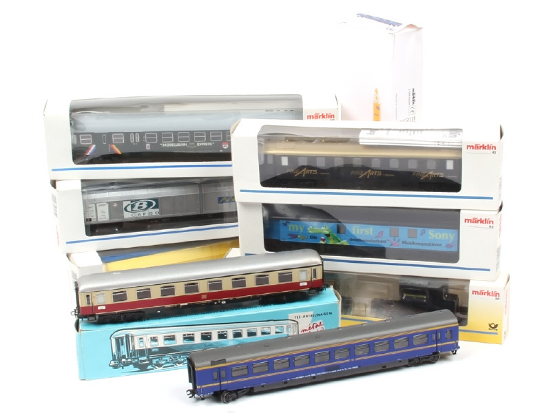 MÄRKLIN 'HO' (ALLEMAGNE) Ensemble de 8 matériels ferroviaires