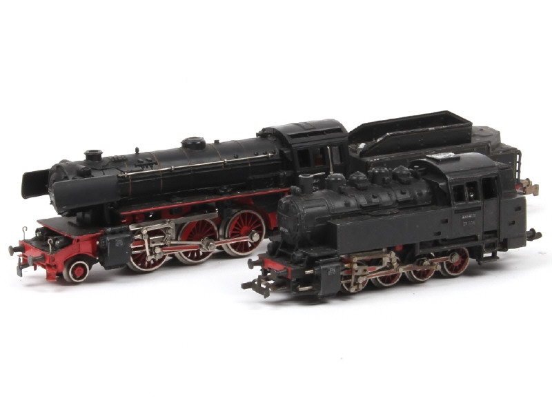 non testé - comprend les modèles : type 131 (sans tender) & 040 - on y joint un tender en état 'D' - exemplaires plus ou moins encrassés avec quelques traces d'oxydation, éléments légèrement déformés & d'autres manquants
