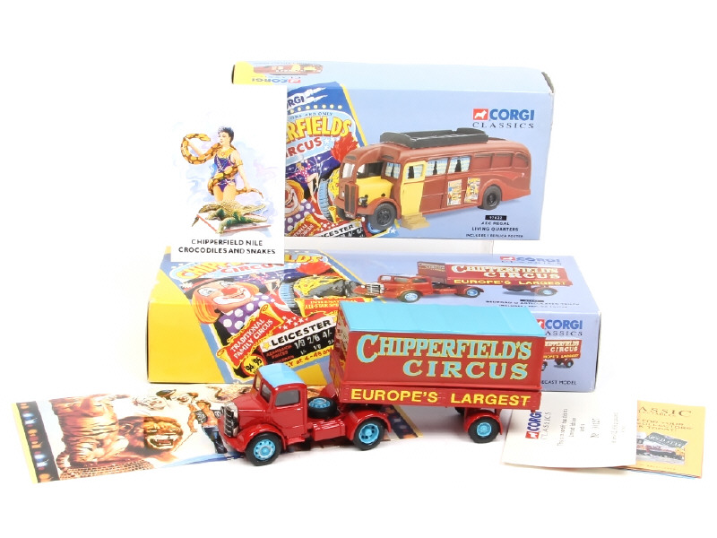 CORGI TOYS (GB) Ensemble de 2 véhicules 'CHIPPERFIELD'S' rouge, bleu & jaune