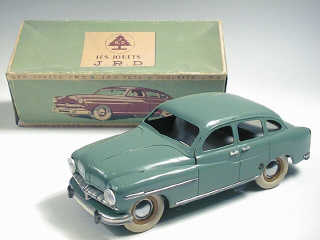 astucieux : la clef se fixe sous l'arrière du véhicule formant ainsi l'extrémité du pot d'échappement - phares électriques - ce modèle n'est vraisemblablement jamais sorti de sa boîte - ETAT EXCEPTIONNEL !