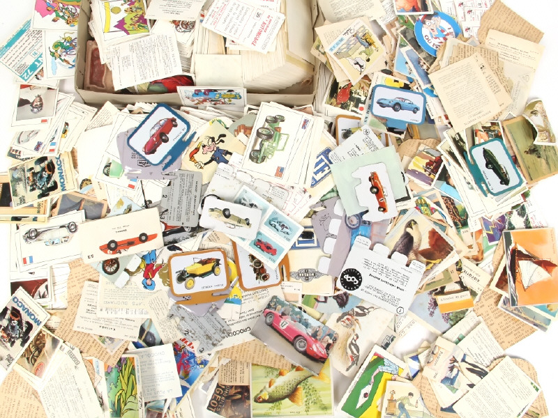 comprend notamment : l'hostoire de l'automobile par PANINI, images de chocolat (CARDON, GUERIN BOUTRON), de biscottes & cartes métalliques MOBIL - possibilité de déchirures, crayonnages & manques