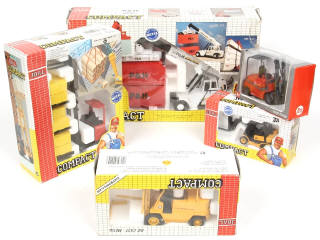 une boite en état 'c' - miniatures reproduisant notamment les modèles : P&H, CATERPILLAR, TELETRUK & BT - on y joint un chariot BT de la marque CARGO RANGE en état 'A.c'