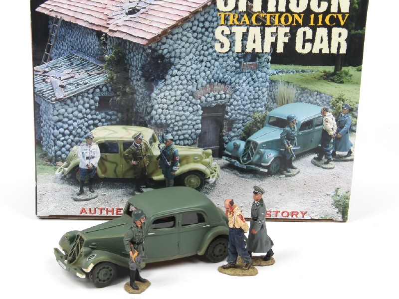 contient : une CITROËN TRACTION 11cv de l'armée allemande (longueur : 16 cm) & 3 figurines