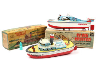 SAN - MARUSAN TOYS (JAPON) Ensemble de 2 bateaux en tôle lithographiée