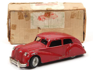 longueur 17,5 cm - moteur à clef (à revoir) - avec direction automatique, renversement de marche & notice - pneus séchés (dont un endommagé)