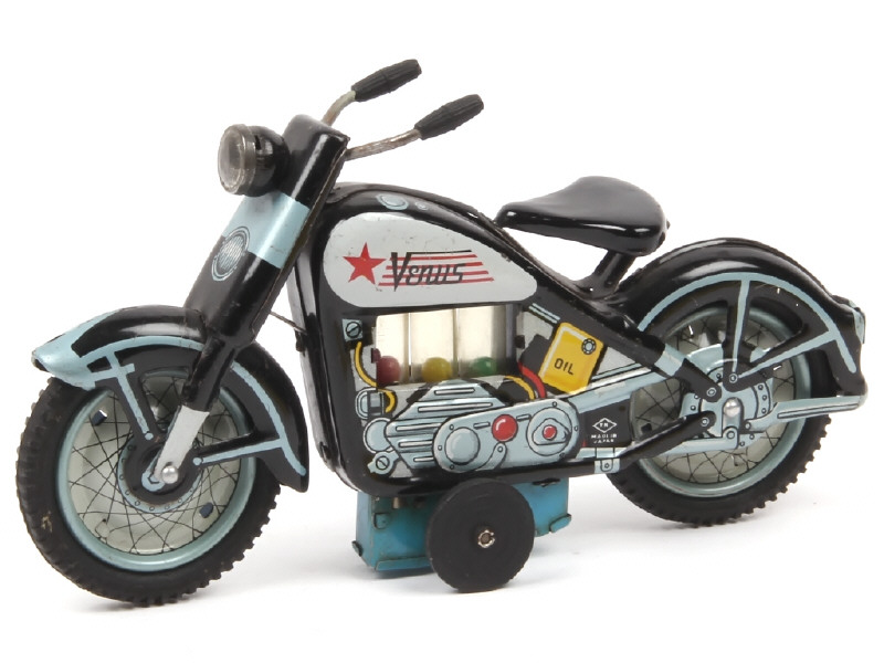 NOMURA (JAPON) 1960 Moto en tôle lithographiée'VENUS' noir, bleu métal & blanc