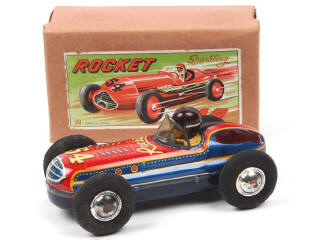 BANDAÏ (JAPON) Voiture de course ROCKET CAR en tôle lithographiée bleu & rouge