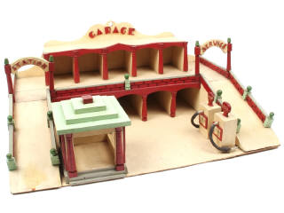 DIVERS (FRANCE) Garage-station service à étage en bois peint crème & rouge
