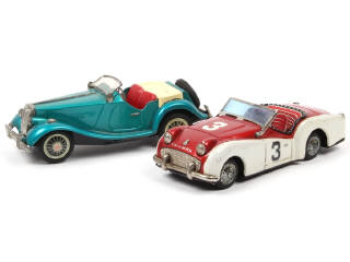 BANDAÏ (JAPON) 811 TRIUMPH TR3 Roadster de compétition framboise métal & blanc cassé