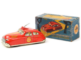 JOUSTRA (FRANCE) 2006 Voiture de pompiers 'SERVICE INCENDIE-RADIO' en tôle lithographiée rouge orangé