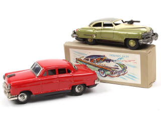 comprend : un modèle de police (moteur à friction & bruiteur fonctionnent, avec boîte état 'b') & une FORD FORDOR (moteur à pile à revoir, manque vitrage de lunette arrière) - on y retrouve notamment la marque NOMURA - parties chromées plus ou moins ternies