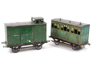 états de 'D' & 'E' - comprend : une voiture de voyageurs de première classe & wagon fourgon - importantes traces d'oxydation, corrosion avec déformations & petits manques