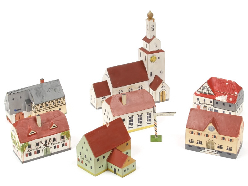 DIVERS Ensemble de 7 bâtiments & un panneau
