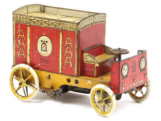 LEHMANN (ALLEMAGNE) 550 Camion-fourgon en tôle lithographiée 'AHA' rouge & jaune
