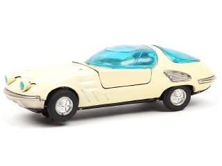longueur : 31 cm - moteur à piles (à revoir) - une fixation de phare cassée & recollée - carrosserie légèrement encrassée