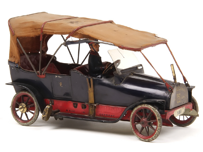LEHMANN (ALLEMAGNE) 686 Cabriolet capoté en tôle lithographiée 'BEROLINA' bleu marine, rouge, capote beige