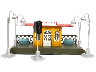 DIVERS (URSS) Gare en tôle peinte jaune, rouge & vert