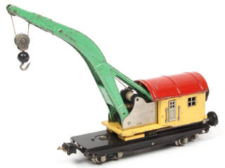 LIONEL (USA) 810 Wagon plateau avec grue jaune, rouge & vert