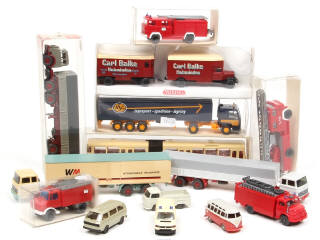miniatures reproduisant les modèles : MERCEDES, VOLKSWAGEN & MAGIRUS - on y retrouve les marques : WIKING & HERPA - possibilité de petits manques & parties cassées - quelques modèles encrassés - 7 exemplaires sans boîte