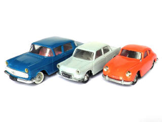 miniatures reproduisant les modèles : PORSCHE 1500 (détails de peinture ajoutés & antenne cassée), BMW 700 LS & OPEL KAPITAN (jantes légèrement déformées) - très légers manques de chrome sur les pare-chocs